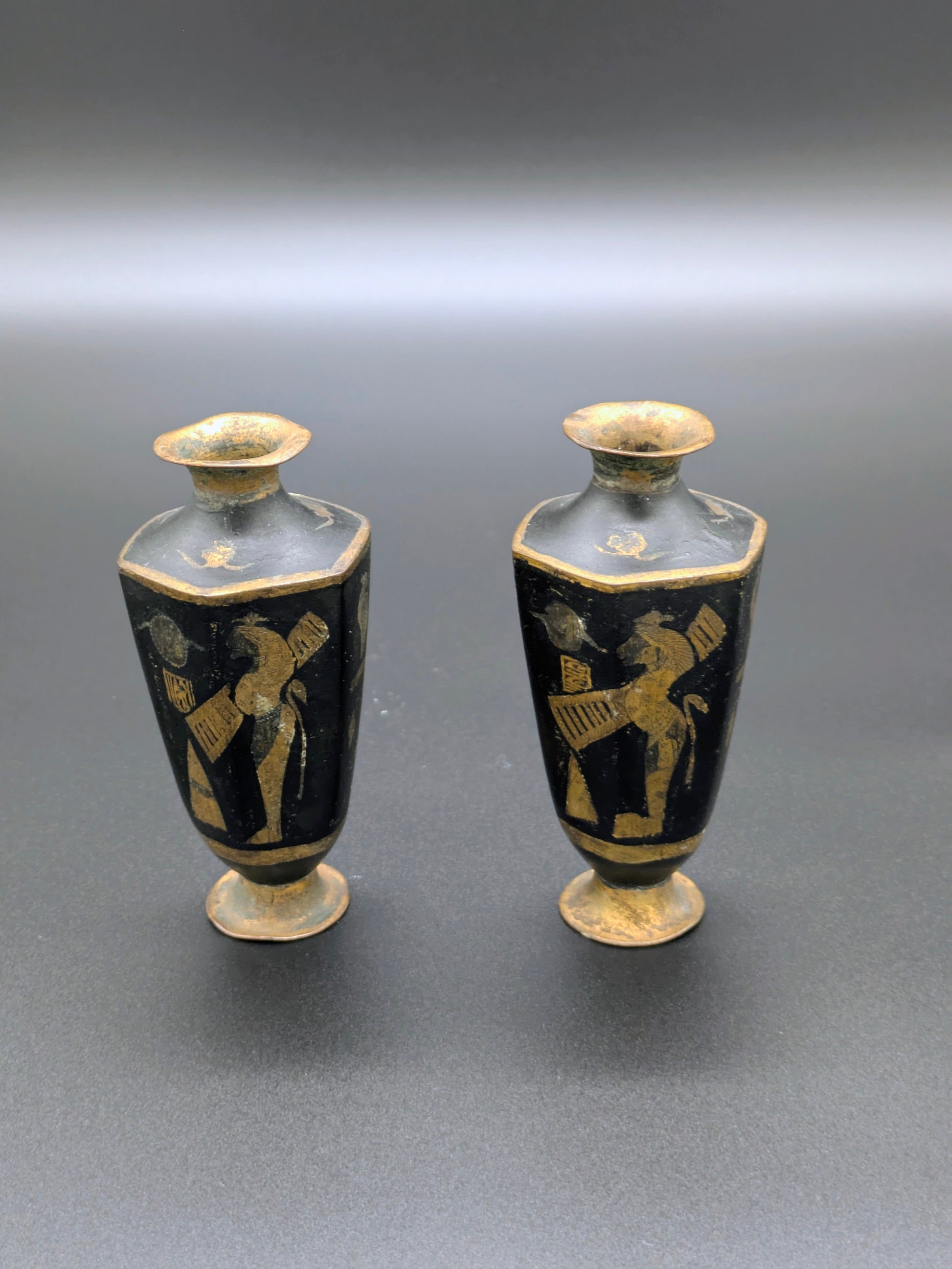 1930s Japanese Made Egyptian Revival Damascene Vases