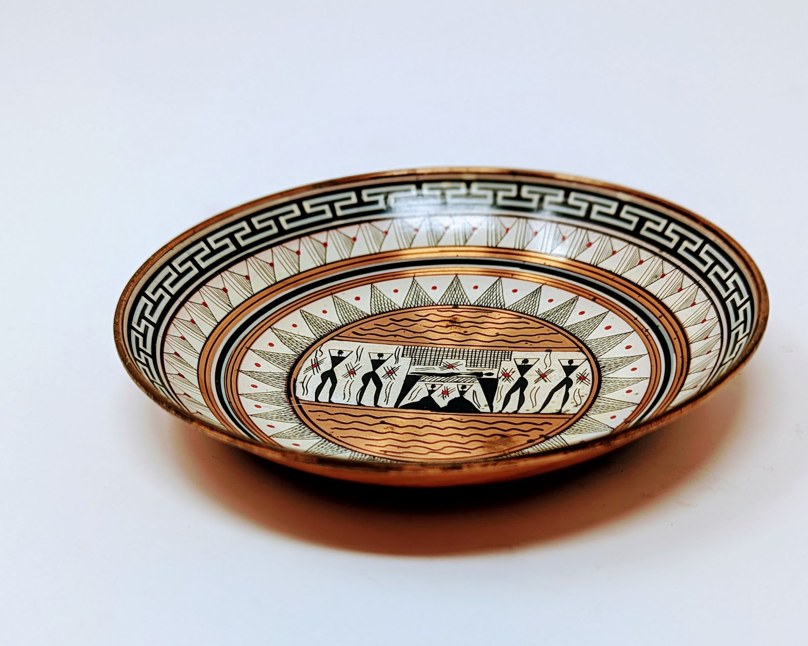 Vintage Minoan Designed Pressed-Copper & Enamel Bowl