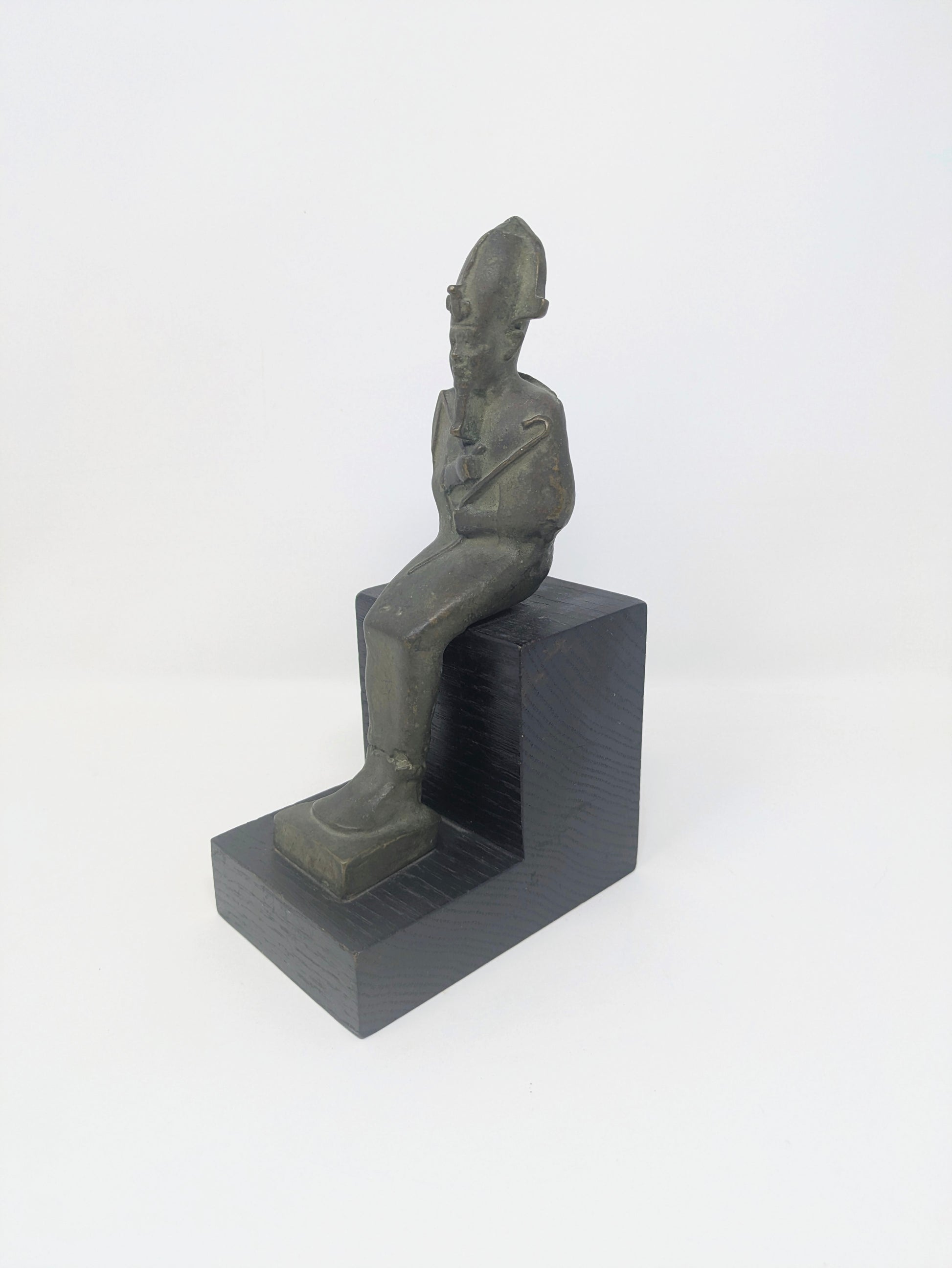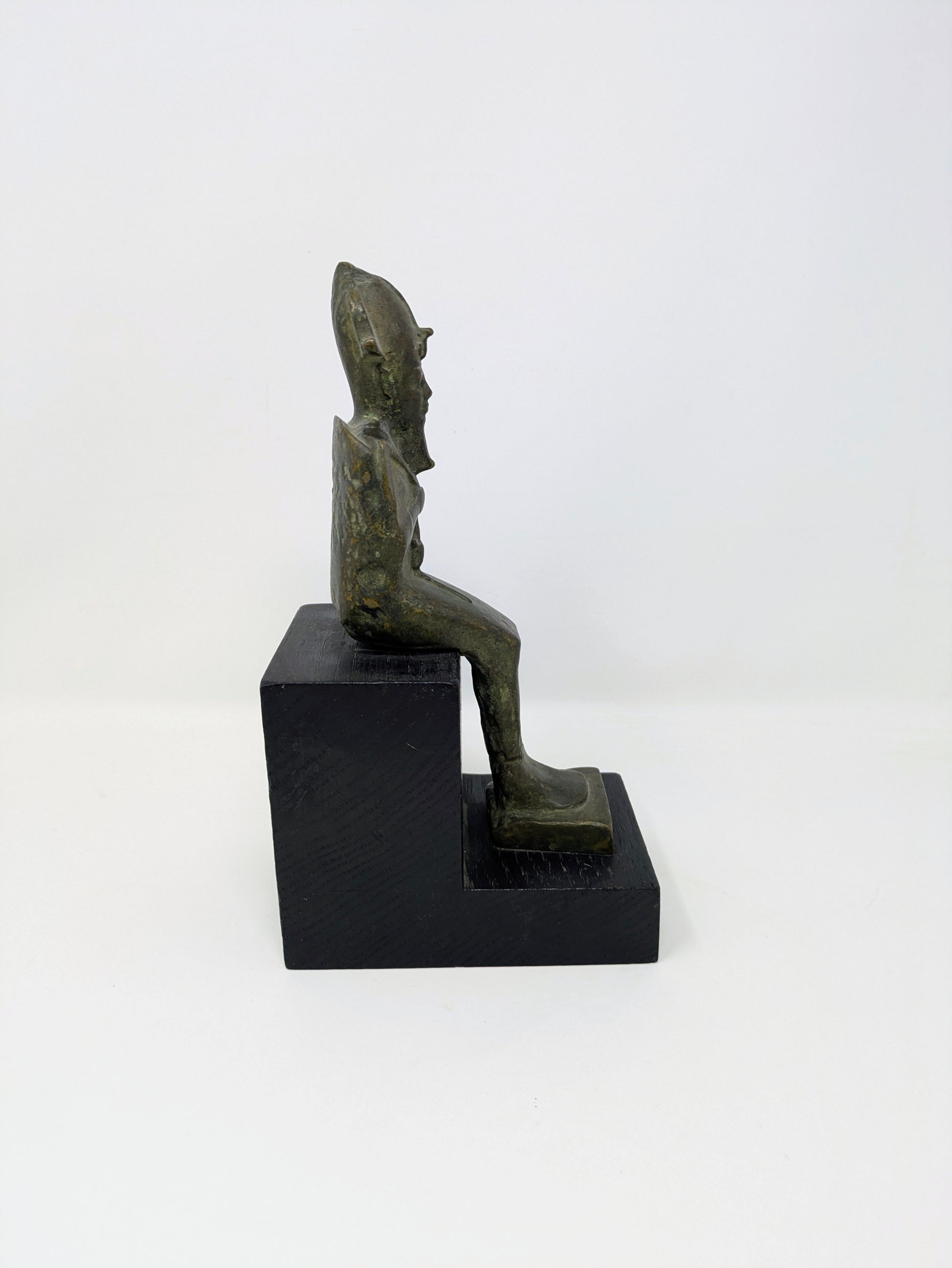 Traveling Man Treasures is selling this bronze statuette of the ancient Egyptian God Osiris. Purchased through the Berlin Museum during the Egyptian Revival Period (c. 1880s-1930s), this piece is in excellent condition and is a fine representation of Ancient Egyptian artistry.