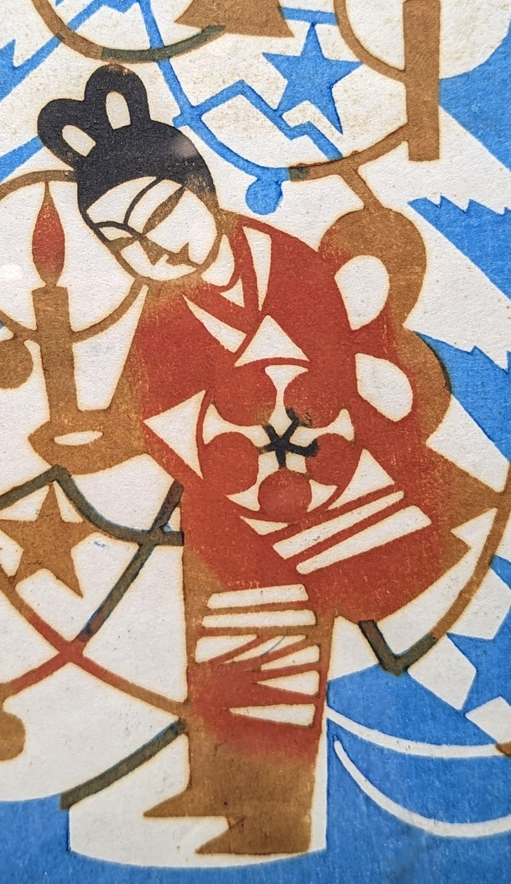 RARE Vintage Japanese Geisha & Christmas Tree | Woodcut Print
