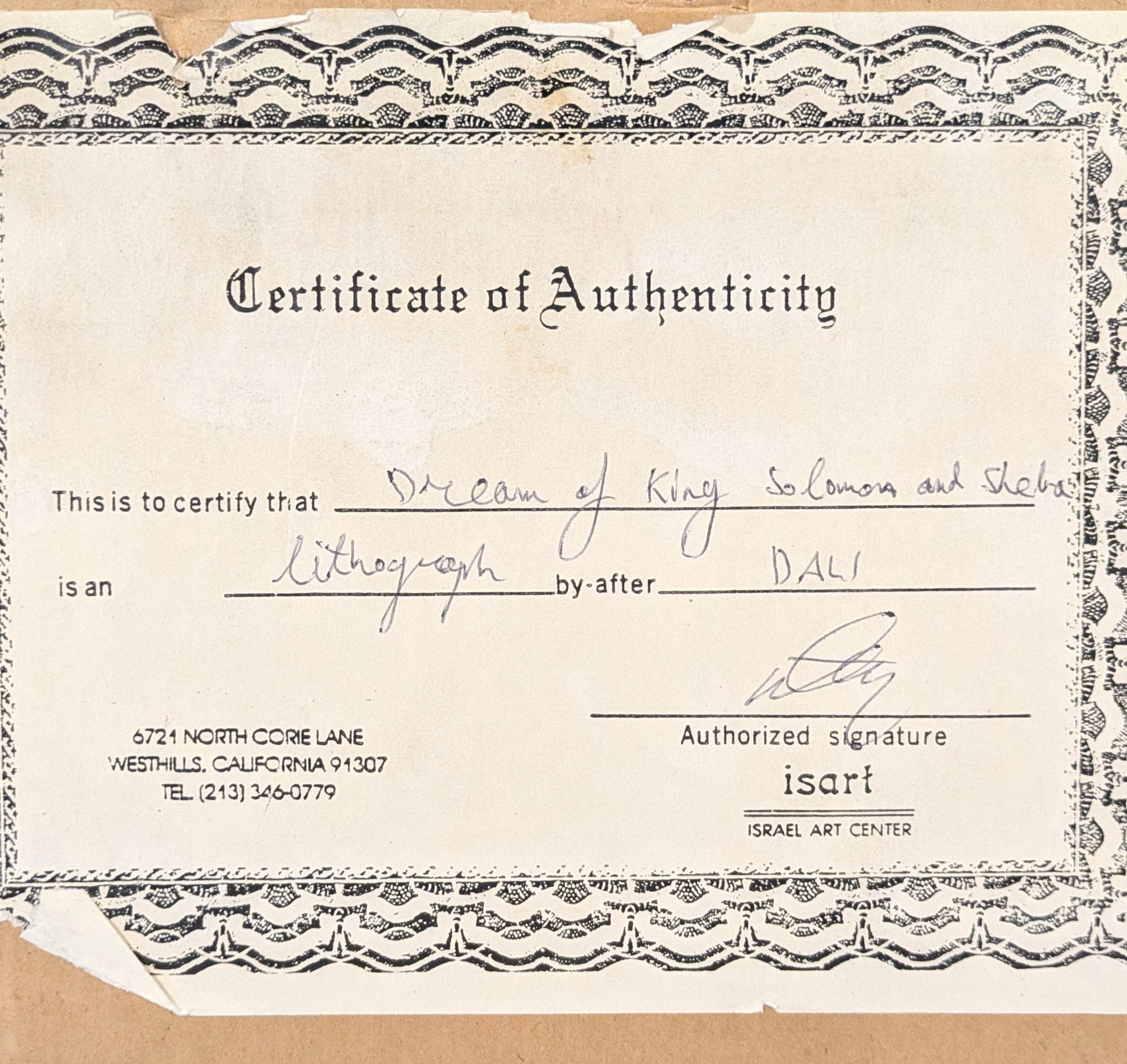 Signed Artist Proof "DREAMS OF SOLOMON & SHEBA" by Salvador Dali (1975)