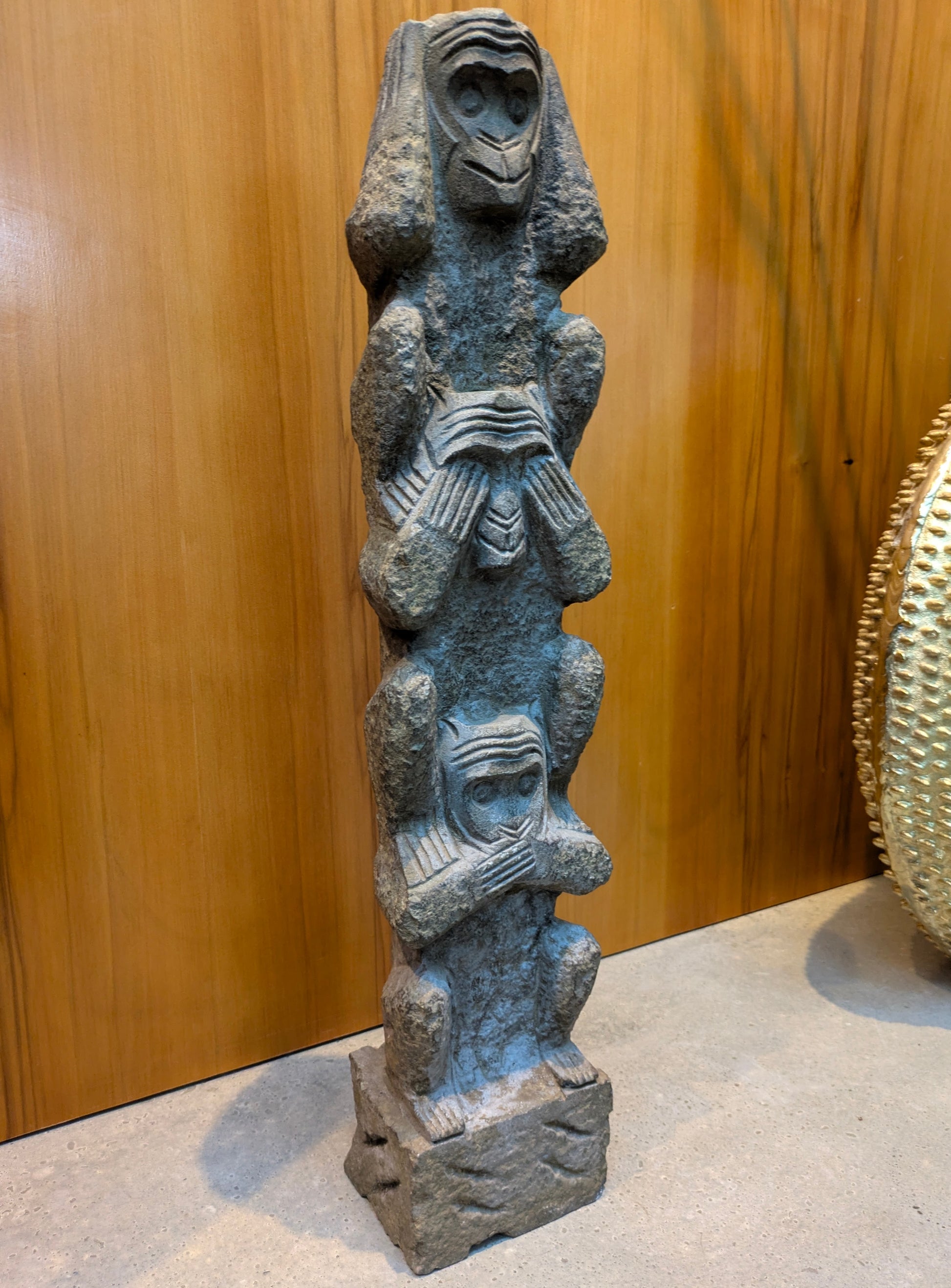 Traveling Man Treasures recently traveled to South Korea and acquired this amazing 24" statue of the "three wise monkeys" based upon a Japanese pictorial maxim that embodies the principle "see no evil, hear no evil, speak no evil."