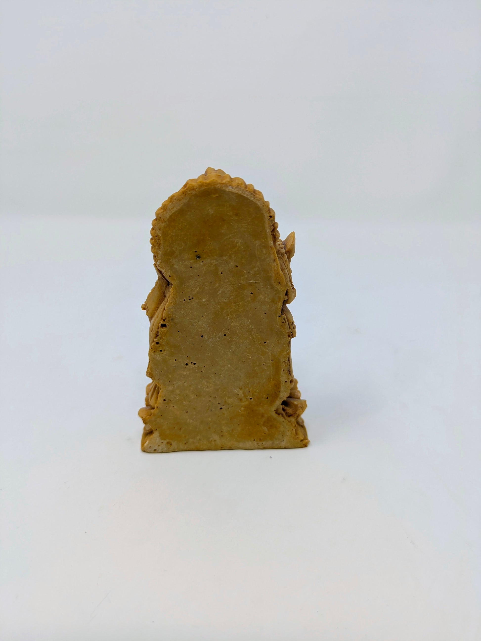Traveling Man Treasures is selling this standing Radha Krishna resin statue, a sublime depiction of divine love and cosmic union. Crafted with meticulous detail, the sculpture captures Radha and Krishna in a timeless embrace, symbolizing the eternal bond between the divine lovers. The piece is in good vintage condition, although there is a small chip on a lotus petal near Krishna’s foot.