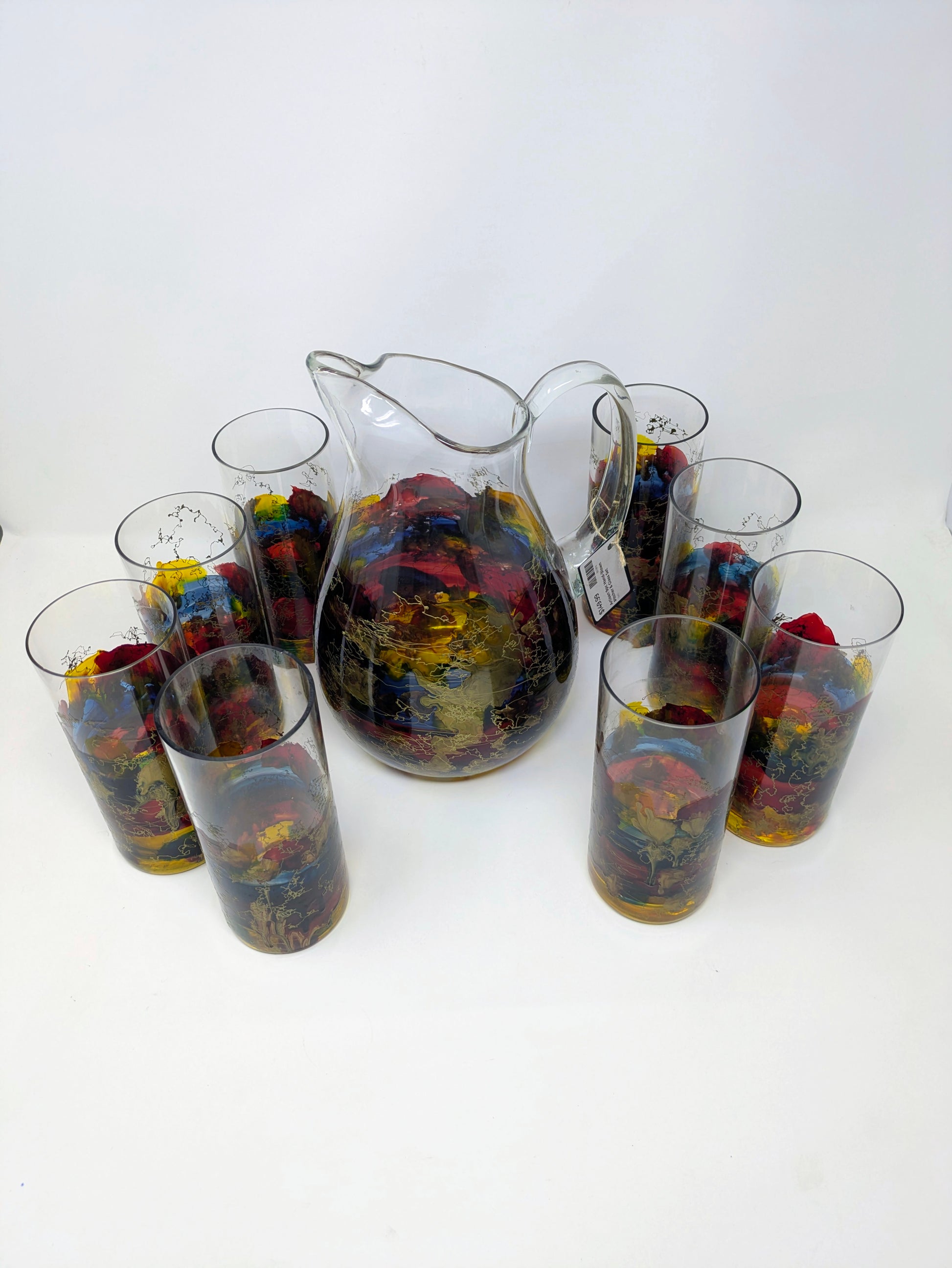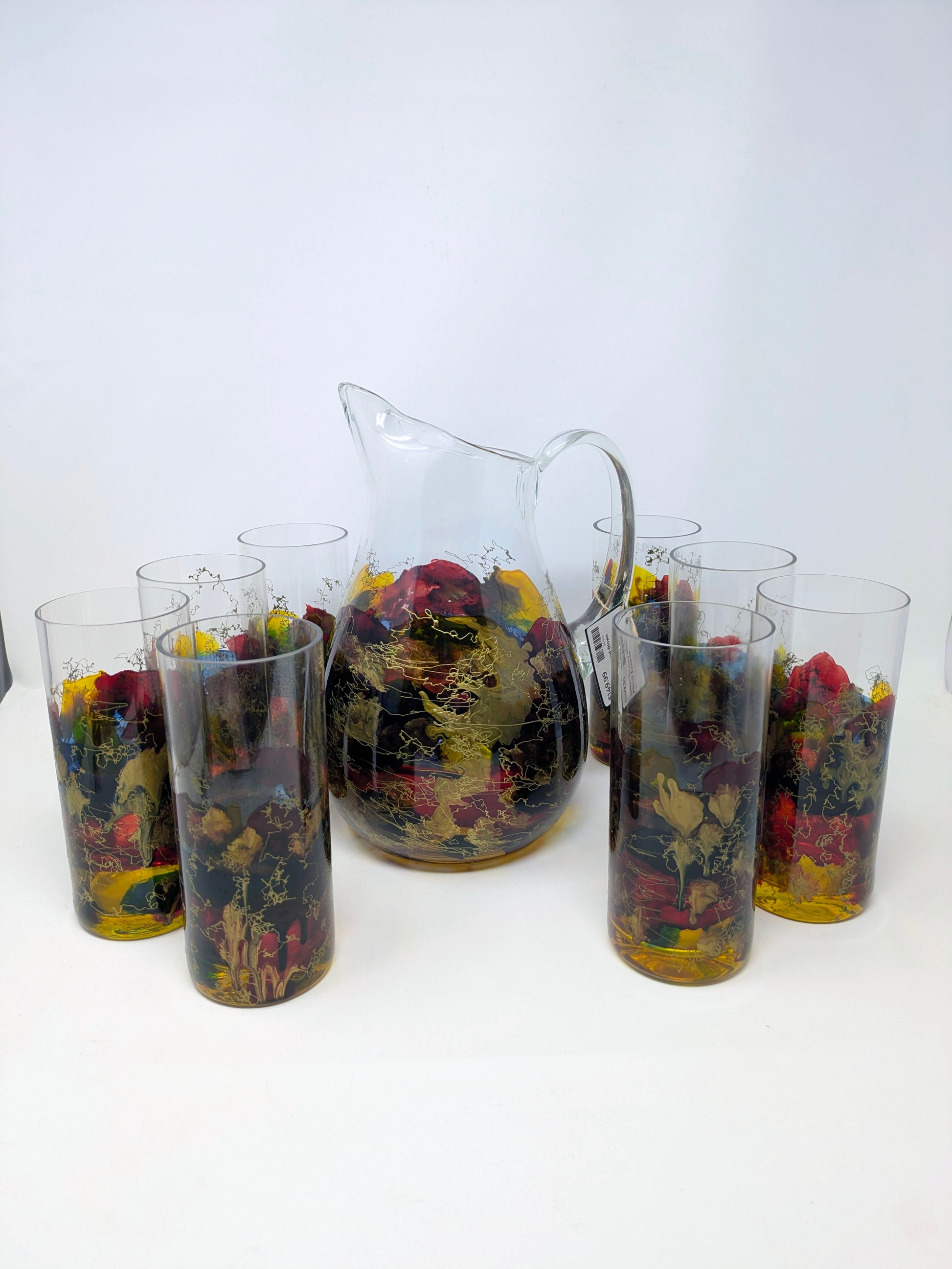 Traveling Man Treasures is selling this vintage Royal Danube Romanian art crystal gold splattered pitcher & eight glass serving set. All nine pieces are in excellent condition with no noticeable issues.